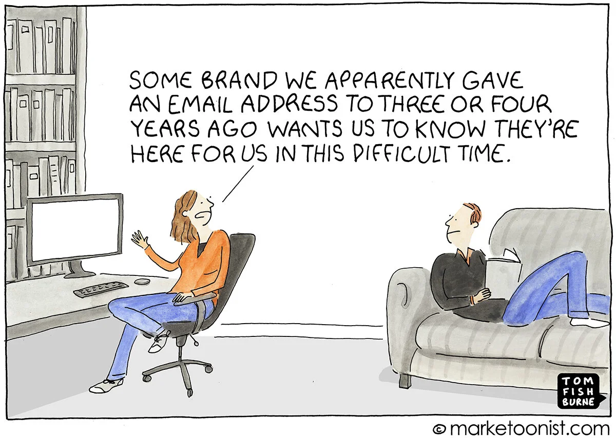 We shouldn't market like it is business as usual, but we shouldn’t feel bad about selling during a time of crisis.