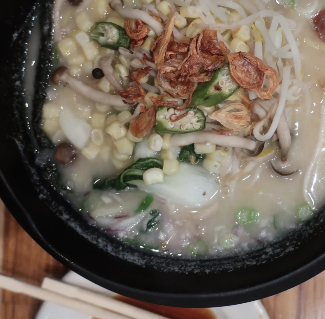 Loved the flavor of it for the first several bites, but then the butter coated my mouth a little too much and overwhelmed me. I brought the leftovers back to the motel and will definitely add the ramen noodles and fixings to a different broth. My husband loved his and inhaled it within minutes. We both agreed the serving staff was great. Very friendly, and helpful—especially when I asked if Miso Butter Ramen was common. It is.